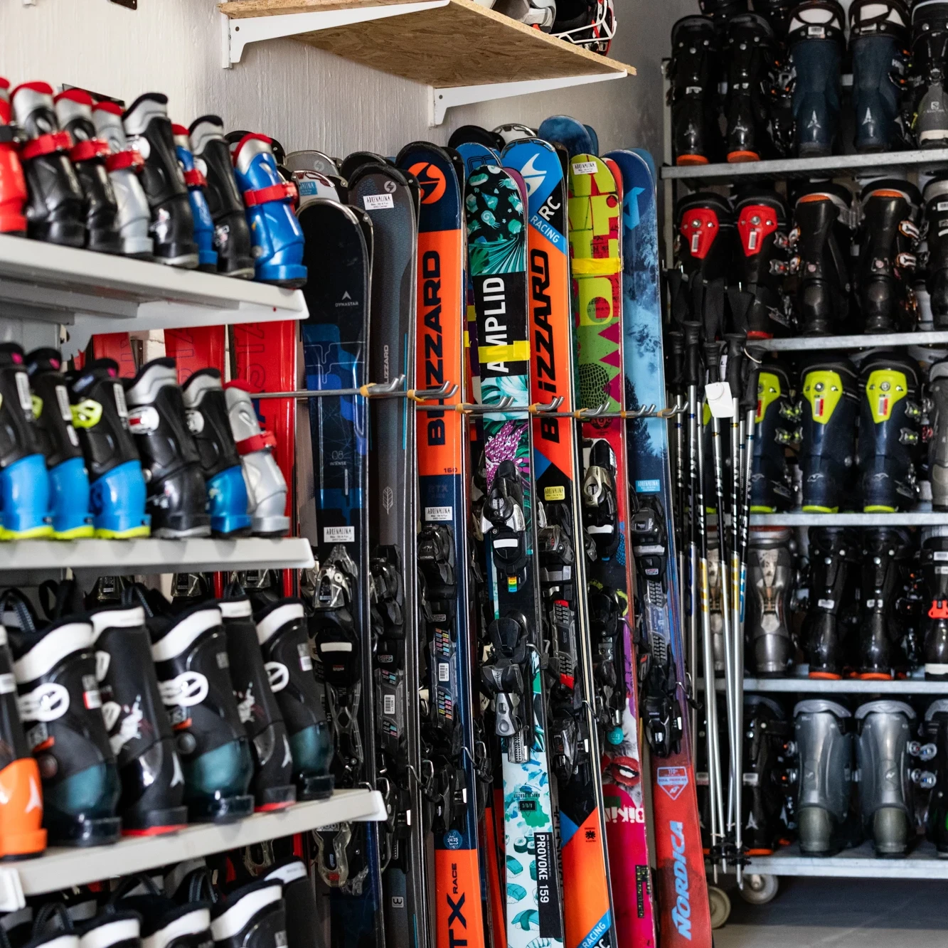 400 paires de skis & chaussures prêtes à rider : du matos frais, entretenu et taillé pour envoyer sur les pistes.
